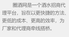 圈酒招商網(wǎng)主要為白酒、啤酒、葡萄酒、保健酒等酒類企業(yè)提供酒水招商、代理批發(fā)、加盟等信息
